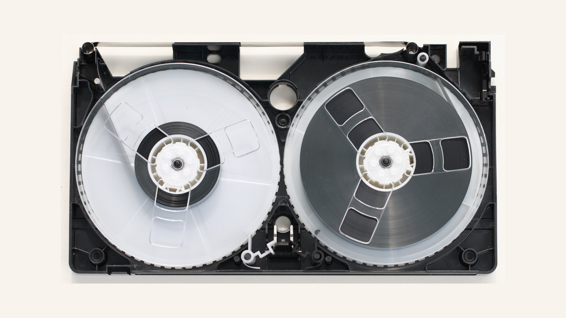 Processo: Desmontagem do magazine, limpeza dos resíduos de mofo e dióxido da fita magnética, higienização da parte interna do magazine, remontagem e rebobinamento da fita.
